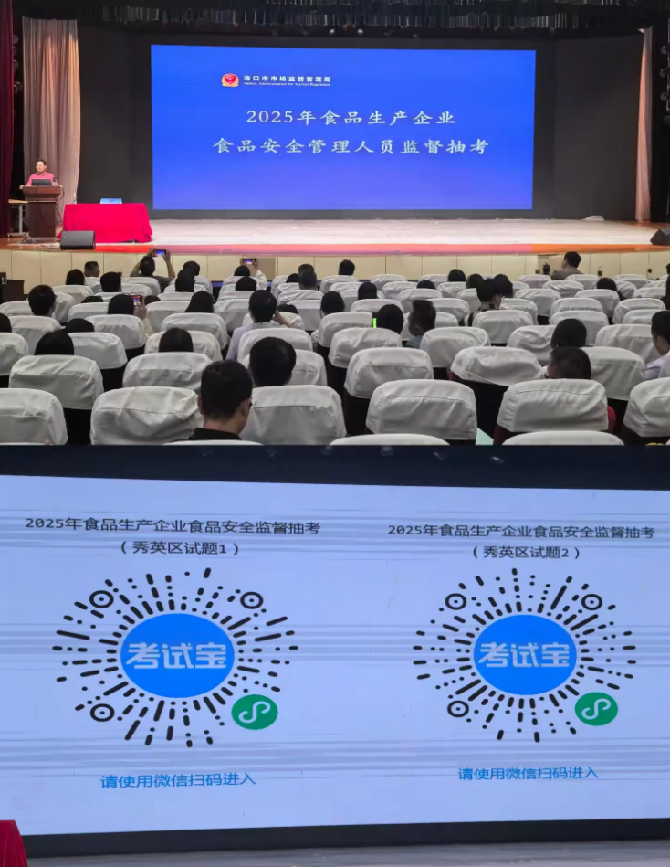 最初,会议现场组织开展食物出产企业食物平安员监视抽考。配合加强分析管理,一是提高坐位,要懂法,严酷食物平安把控。各企业食物平安员扫码登录“测验宝”App进行食物平安学问测验。海口市市场监视办理局组织举办2025年海口市食物出产企业(含保健食物)食物平安专题培训班?